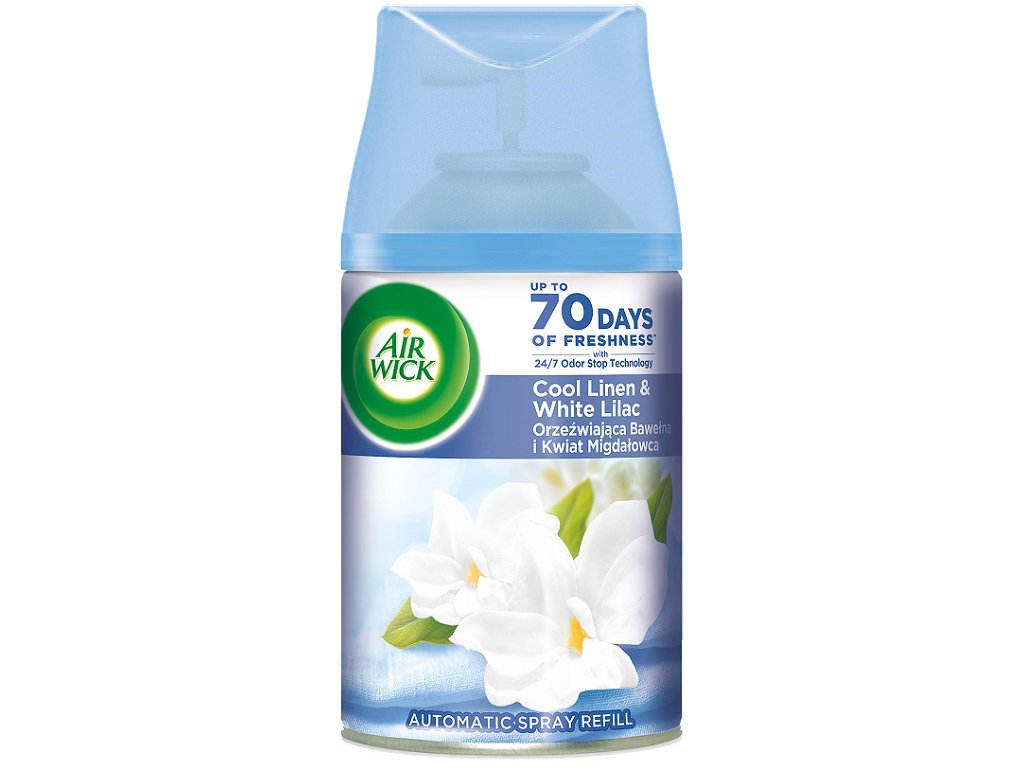 Náplň do difuzéru Air Wick Freshmatic nabízí vůni svěžího prádla, díky pečlivě vybrané směsi esenciálních olejů. Váš příbytek bude naplněn osvěžujícím aroma, které se postará o neutralizaci nepříjemných pachů a provoní váš domov po dobu 70 dní. Difuzér nepřetržitě uvolňuje svěží vůni, přispívá k příjemné atmosféře a navodí pocit pohody ve vašem prostředí.