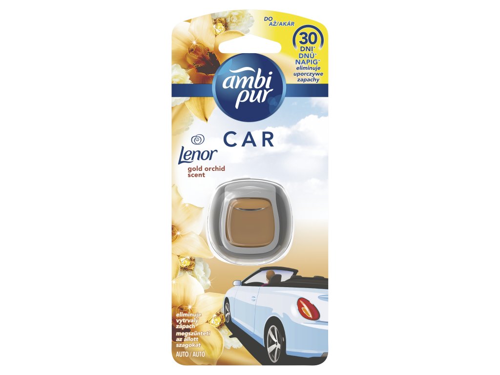AMBI PUR Car Jaguar Lenor Gold Orchid je osvěžovač vzduchu do auta, který kombinuje technologii OdourClear s luxusní vůní inspirovanou tóny zlaté orchideje, krémové vanilky a jemných květinových akcentů. Účinně neutralizuje nepříjemné pachy, například z jídla, domácích zvířat, kouře či odpadků, a zanechává interiér vozu provoněný teplou, smyslnou a uklidňující vůní.