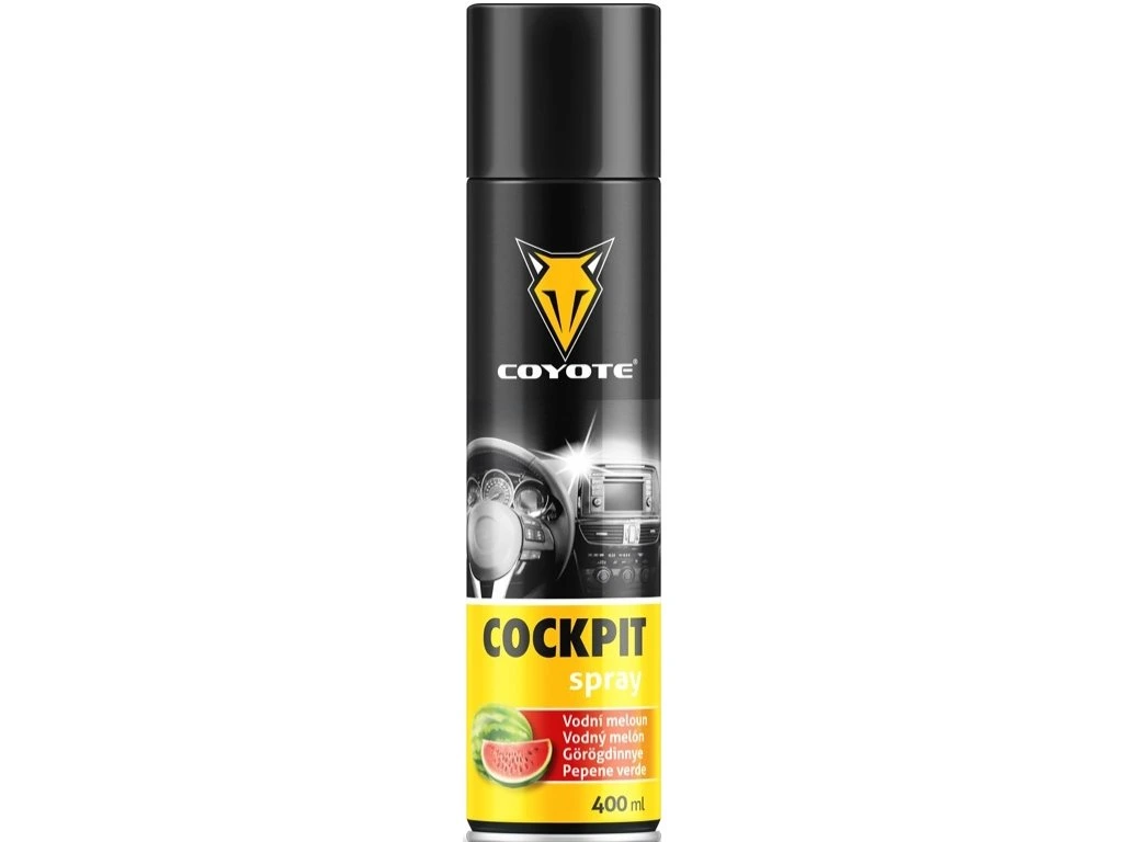 COYOTE Cockpit spray vodní meloun je univerzální přípravek pro čištění, leštění a ošetření interiéru automobilu. Je vhodný pro plasty, kůži, koženku i dřevěné prvky, kterým pomáhá navrátit upravený vzhled a zároveň je chrání před opotřebením.
