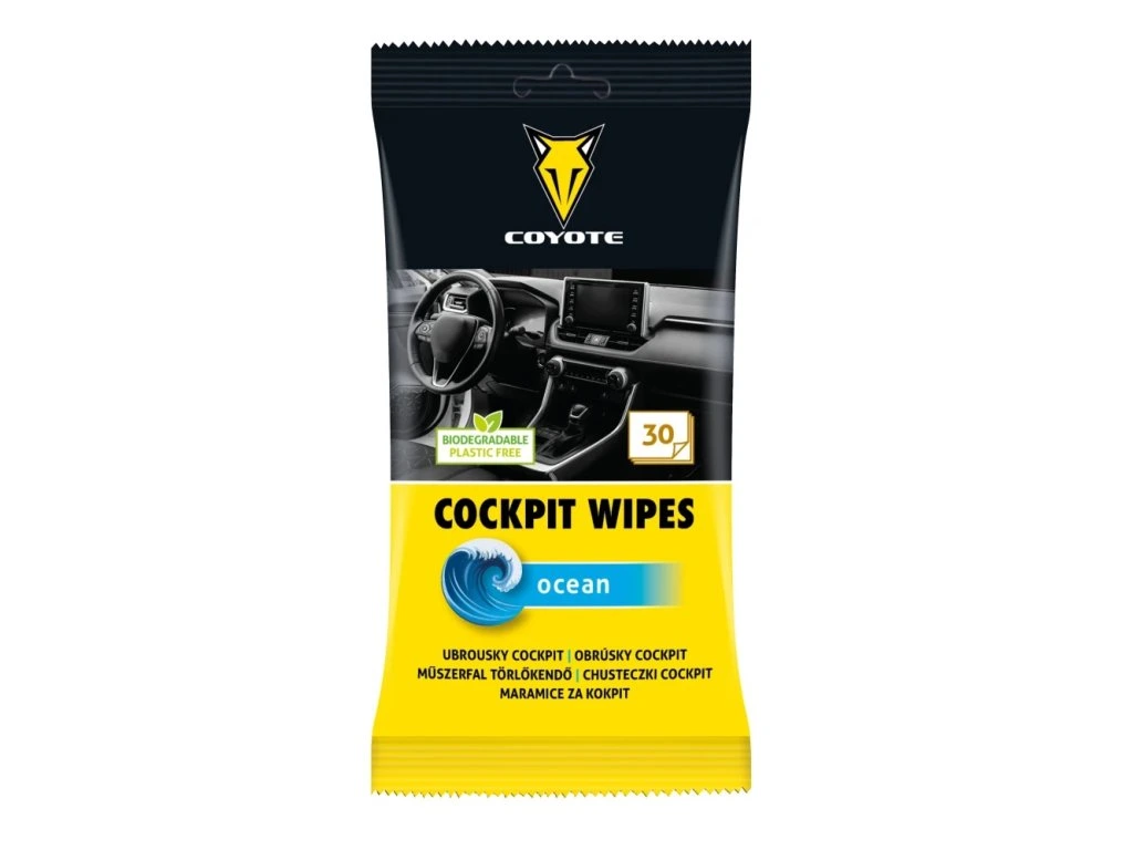 COYOTE Cockpit ubrousky oceán jsou praktickým řešením pro rychlé čištění a ošetření interiéru automobilu. Jsou vhodné především na plastové části a palubní desku, kterým dodávají upravený vzhled a svěží čistotu.