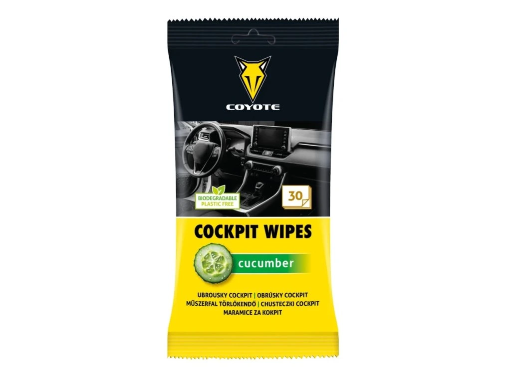 COYOTE Cockpit ubrousky okurka jsou praktickým pomocníkem pro rychlé čištění a ošetření interiéru automobilu. Jsou vhodné zejména pro plastové části a palubní desku, kde pomáhají udržovat povrchy čisté a upravené.