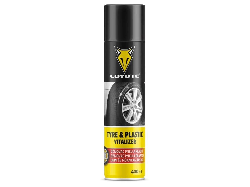 COYOTE Oživovač pneu a plastů je účinný přípravek určený pro obnovu vzhledu a ochranu pneumatik i plastových částí vozidla. Pomáhá zvýraznit přirozenou černou barvu, dodává povrchu lesk a zanechává jej vizuálně upravený.