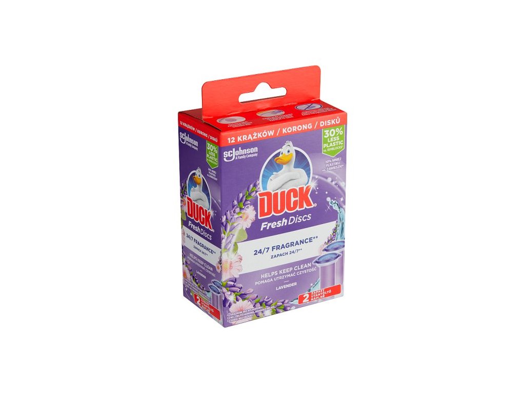 WC gel DUCK Fresh Discs o objemu 2x36 ml přináší dokonalou čistotu vaší toaletě a spolehlivě ji chrání před vodním kamenem při každém spláchnutí. Stačí jednoduše aplikovat gelový disk na vnitřní stěnu mísy a on za vás bude pracovat. WC gel DUCK Fresh s objemem 2x36 ml také příjemně provoní celou místnost. Jedno balení náplně vám vydrží až cca 16 týdnů. V balení najdete jak gelovou náplň, tak i hygienický aplikátor, který usnadní aplikaci produktu. S WC gelem DUCK Fresh Discs bude vaše toaleta vždy vonět svěže a zářit čistotou.