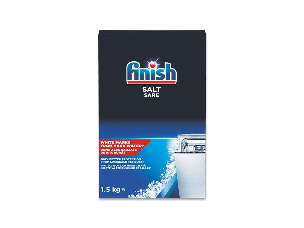 Sůl do myčky nádobí FINISH je speciálně vytvořena pro změkčení vody a ochranu myčky před usazováním vodního kamene, který může snížit její výkon a zkrátit životnost spotřebiče. Díky své vysoké čistotě (99 %) poskytuje až o 100 % lepší ochranu než běžné soli nevhodné pro použití v myčkách. Pravidelné používání soli zamezuje vzniku bílých skvrn a zaschlých šmouh na nádobí a sklenicích a přispívá k optimálním výsledkům mytí.
