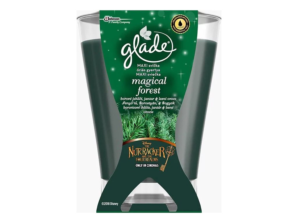 GLADE MAXI svíčka Magical Forest je parfémovaná svíčka určená k provonění interiéru a vytvoření klidné, příjemné atmosféry. Vůně borového chvojí, která se mísí se svátečními tóny skořice a muškátového oříšku, navozuje pocit zimní přírody a útulného domova. Svíčka je umístěna ve skleněné dóze, která slouží jako bezpečný i dekorativní prvek. Při hoření poskytuje stabilní světlo a vydrží hořet až 52 hodin, což umožňuje dlouhotrvající provonění prostoru.