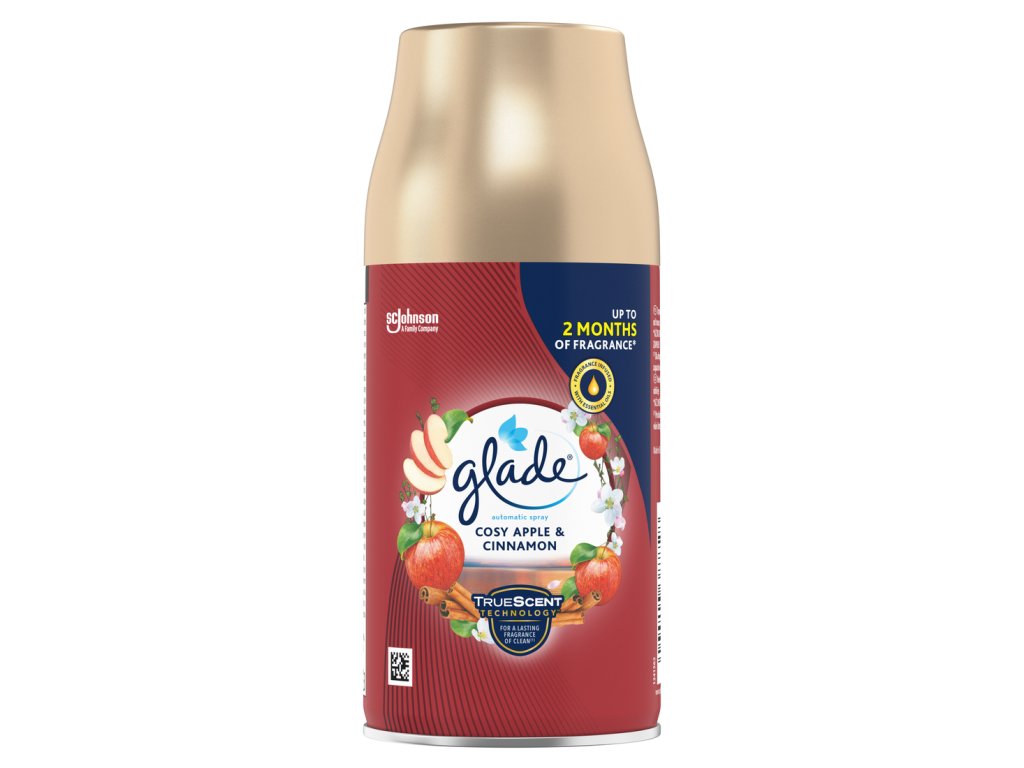 Náplň do automatického osvěžovače vzduchu značky GLADE přináší do interiéru hřejivou vůni pečených jablek a skořice, která navozuje atmosféru domácí pohody a klidných zimních večerů. Tento osvěžovač je určený do přístroje GLADE Automatic Spray, který zajišťuje automatické uvolňování vůně až po dobu 60 dní (při nastavení intervalu na 36 minut). Náplň účinně neutralizuje pachy a vytváří příjemné prostředí v obývacích pokojích, ložnicích či kuchyních.