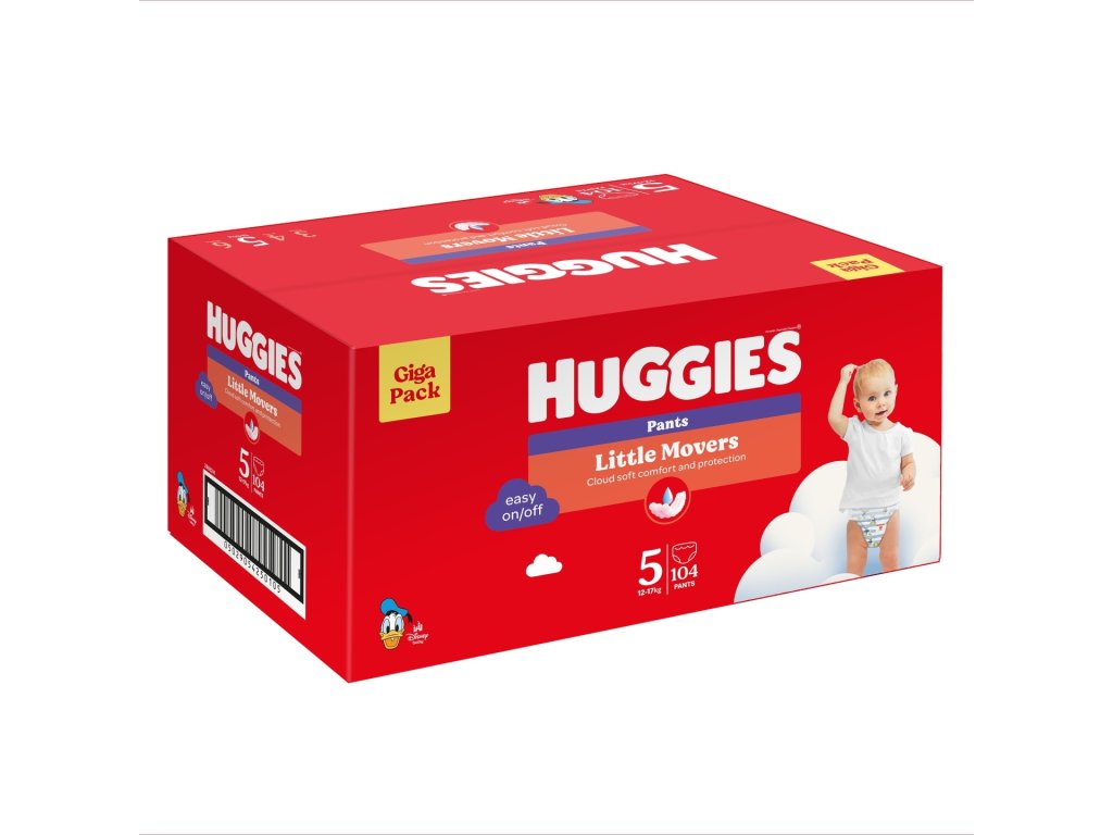HUGGIES Little Movers 5 plenkové kalhotky 12‑17 kg 104 ks