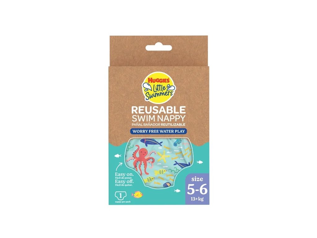 HUGGIES Little Swimmers Nappy jsou opakovaně použitelné plavecké kalhotky pro děti, navržené speciálně pro bezpečné a pohodlné koupání v bazénu i v přírodních vodách. Díky pružným bočním stranám a praktickému zapínání na bocích dobře padnou a usnadňují manipulaci při oblékání i svlékání. Vnitřní absorpční vrstva zachytí případné nehody, aniž by nasákla vodu zvenčí, zatímco gumičky kolem nožiček pomáhají zabránit úniku. Kalhotky jsou šetrnou alternativou k jednorázovým plenkám, přičemž vydrží až 50 vyprání. Barevné a veselé dětské motivy pak potěší každého malého plaváčka.