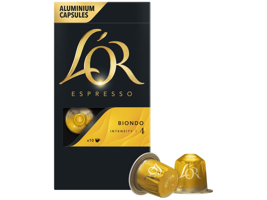 L’OR Espresso Biondo je jemná, lahodná káva v kapslích, která v sobě spojuje decentní oříškové tóny a jemné pražení pro dokonale vyvážený chuťový zážitek. Tato pražená mletá káva v hliníkových kapslích je určená pro kávovary Nespresso®* Original a připravíte z ní klasické espresso, které potěší smysly a dodá energii bez zbytečné hořkosti. Obsahuje 100% Arabiku, jejíž kvalitu zaručují zkušení kávoví mistři značky L’OR. Intenzita 4 z 10 nabízí ideální kombinaci jemnosti a plnosti pro každodenní potěšení.