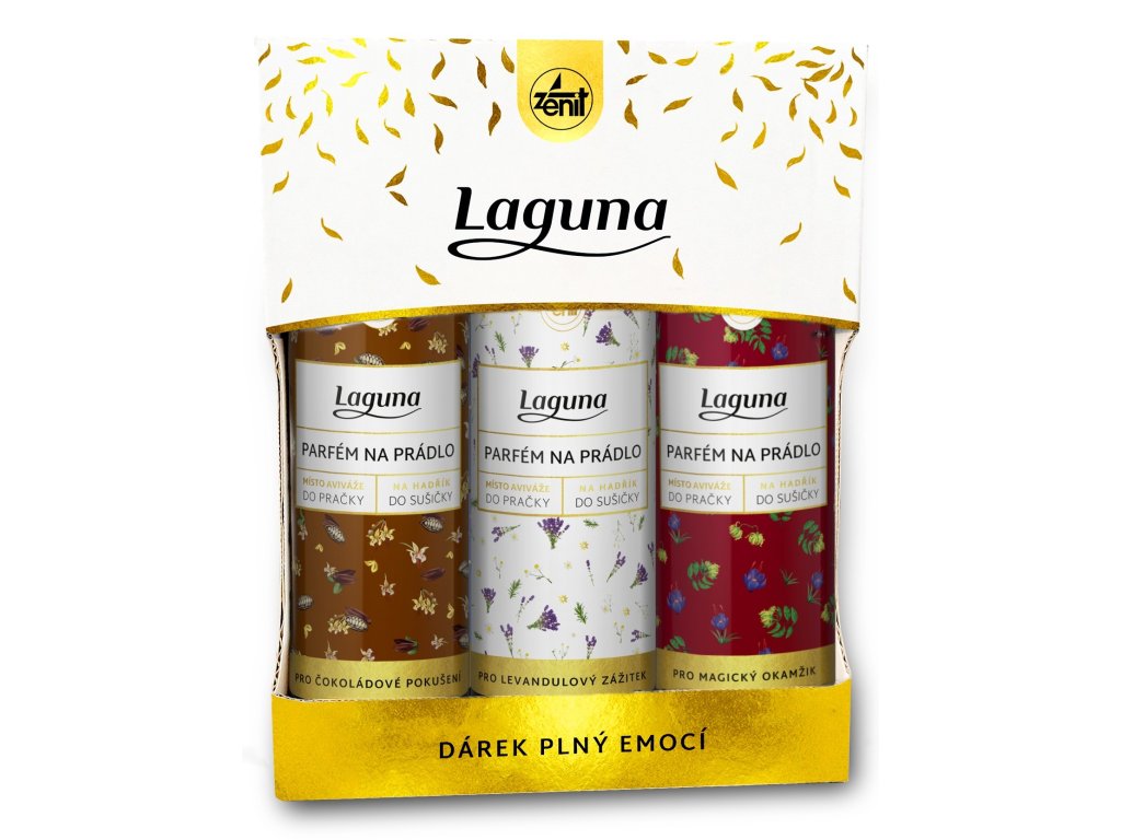 Dárkový balíček LAGUNA Nálada nabízí tři jedinečné vůně, které umožní měnit provonění prádla podle momentální nálady. Díky koncentrovanému složení dodají textiliím dlouhotrvající a intenzivní vůni, aniž by měnily jejich vlastnosti.