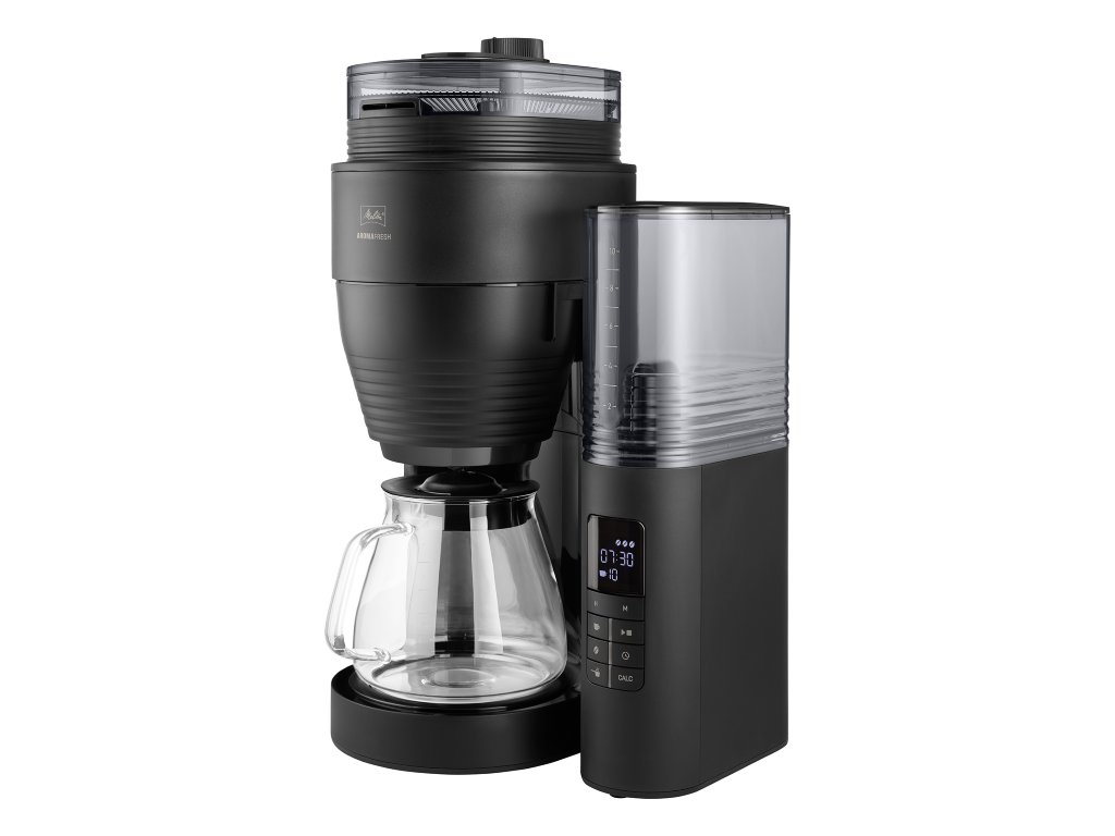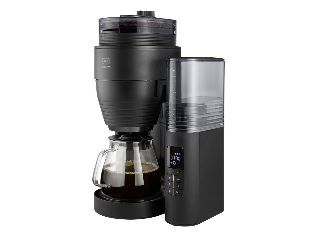 Kávovar umožňuje přípravu filtrované kávy až pro 10 šálků a nabízí 11 úrovní mletí. Integrovaný mlýnek zajišťuje rovnoměrné mletí a stabilní kvalitu chuti. Ovládání probíhá pomocí přehledných tlačítek, bez displeje. Technologie Aroma Premium optimalizuje průtok a extrakci tak, aby byla káva aromatická i při přípravě menšího množství.