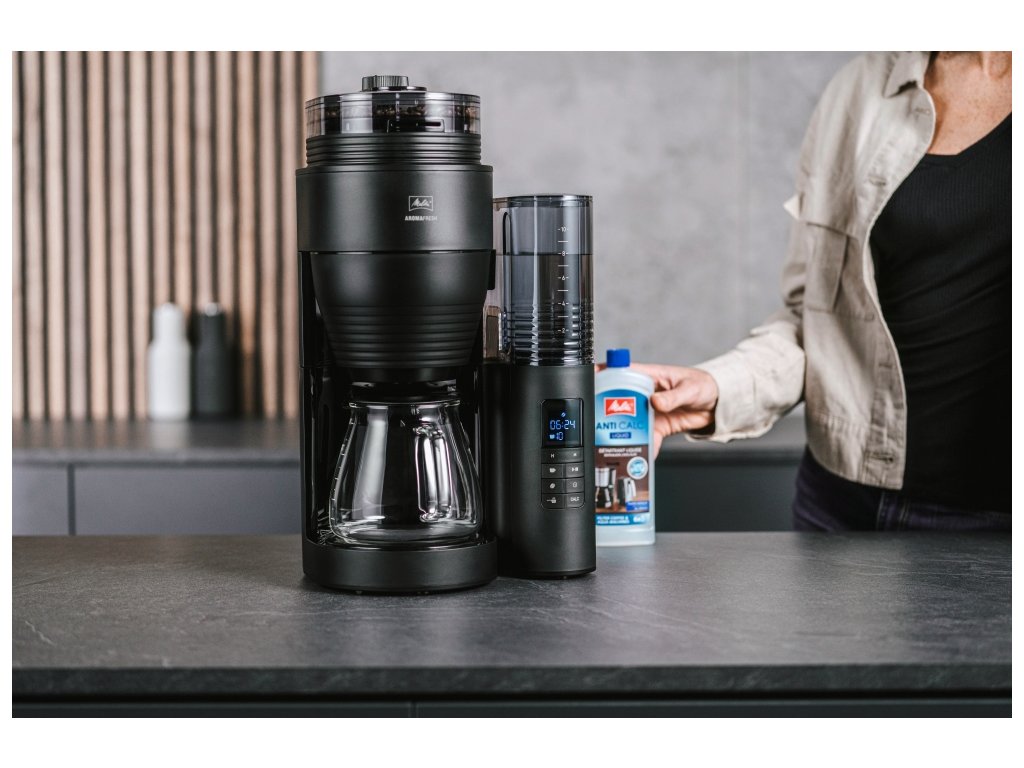 V technické výbavě najdete časovač, program odvápnění, nastavení tvrdosti vody, odnímatelný filtr 1x4® a funkci drip stop, která zabrání odkapávání při vyjmutí konvice. Průhledná nádržka na vodu s ryskami usnadňuje dávkování. Kávovar má také samostatný ohřev pro udržení teploty kávy po dobu 20, 40 nebo 60 minut.