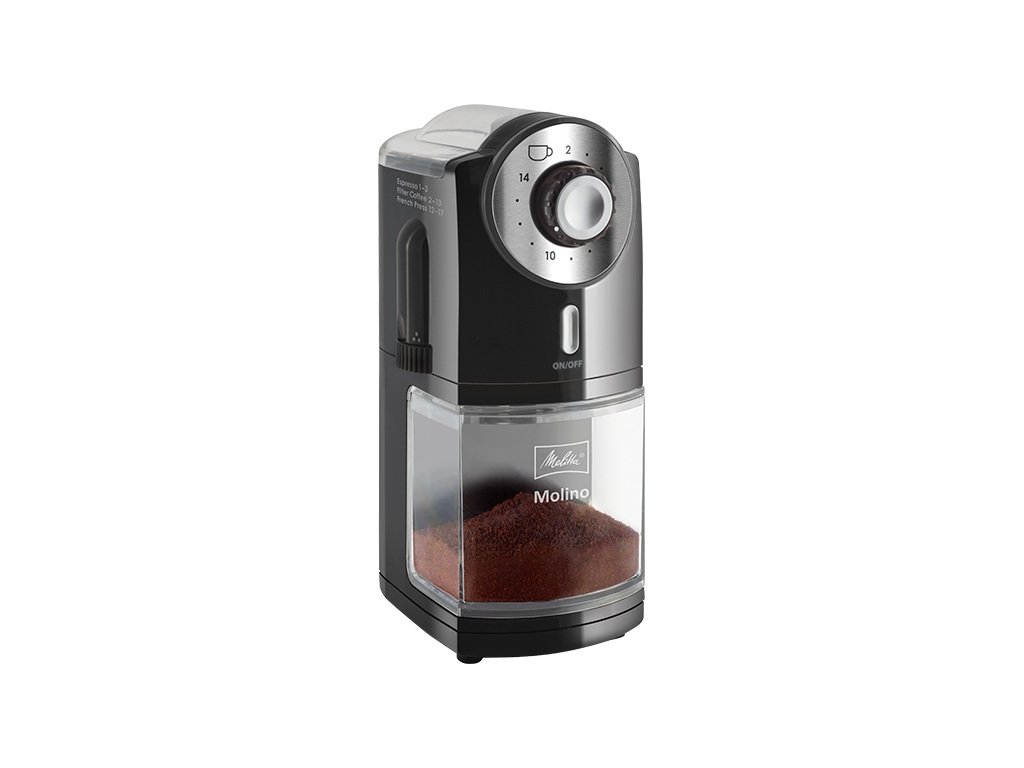 Elektrický mlýnek na kávu MELITTA Molino je ideální volbou pro všechny, kteří si potrpí na čerstvě namletá kávová zrna. Díky 17 stupňům nastavení hrubosti připravíte jemně mletou kávu pro espresso, střední pro překapávač i hrubší pro French press.