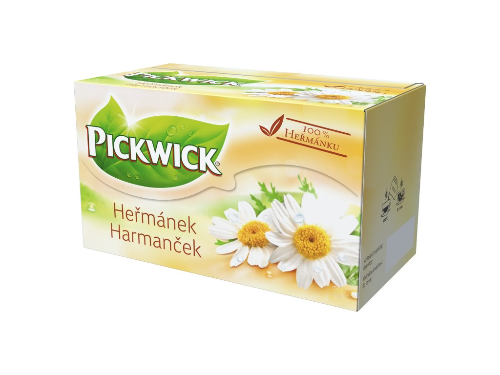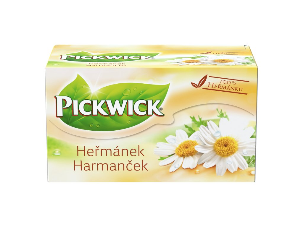PICKWICK Bylinný čaj heřmánek je porcovaný čaj připravený ze 100% heřmánku. Nálev vyniká jemnou bylinkovou chutí a příjemným květinovým aroma, které je pro heřmánek typické. Tento jednoduchý a čistý bylinný čaj nabízí přirozený charakter oblíbené bylinky, díky čemuž patří mezi tradiční a vyhledávané čajové nápoje.