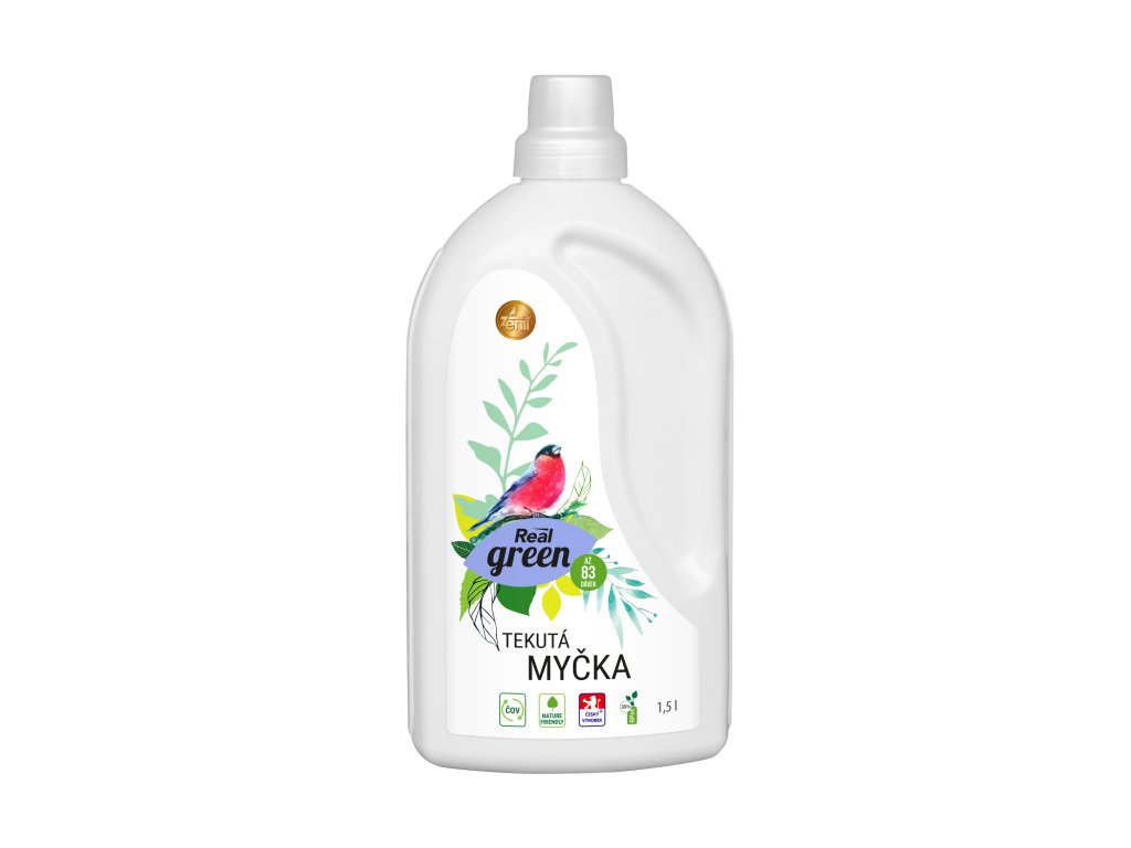 REAL GREEN tekutá myčka je biologicky odbouratelný tekutý gel do myčky nádobí, který účinně odstraňuje mastnotu, zbytky jídel i zaschlé skvrny. Díky složení určenému pro krátké mycí cykly a nižší teploty poskytuje kvalitní výsledek i při úsporném programu. Neobsahuje parfém, barviva ani fosfáty a díky tomu představuje volbu vhodnou pro domácnosti, které preferují šetrné řešení s vysokou účinností. Gel se během mytí snadno rozpouští, nezanechává stopy na nádobí a je vyroben z látek splňujících požadavky na Ecolabel. Jedna láhev vystačí na 83 mycích dávek, což z ní činí praktické a ekonomické balení.