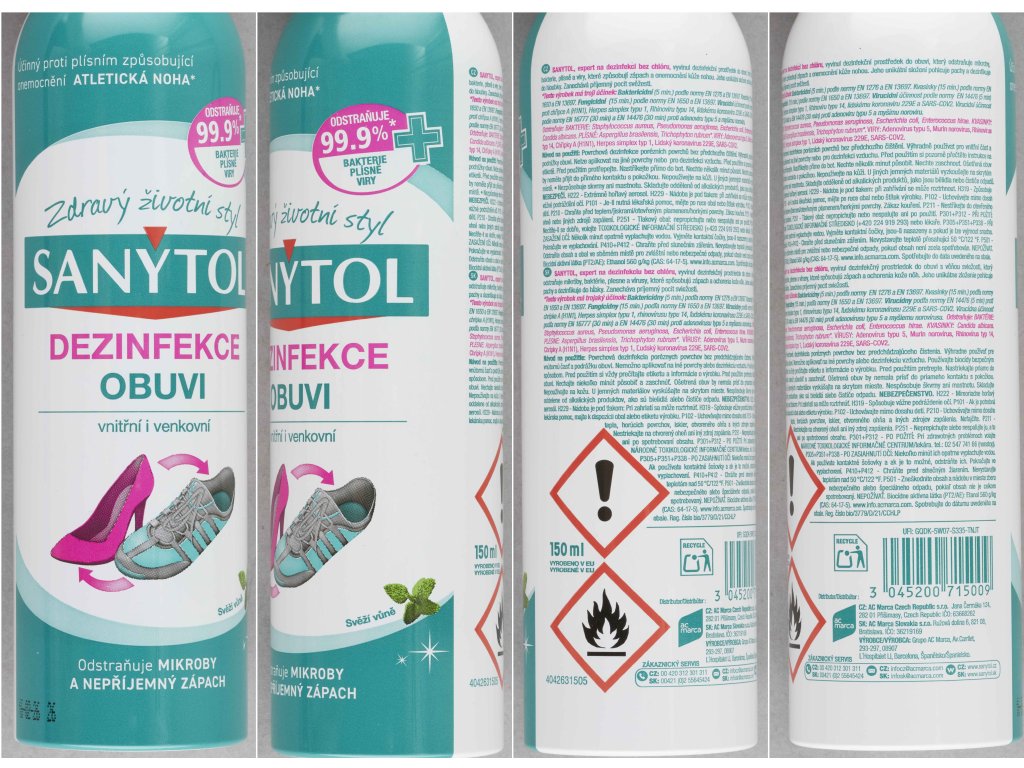Dezinfekce do obuvi značky SANYTOL je praktickým pomocníkem pro každodenní péči o hygienu vaší obuvi. Účinně ničí 99,9 % bakterií, plísní a virů, které jsou častou příčinou nepříjemného zápachu, podráždění pokožky nebo přenosu infekcí, jako je například atletická noha, mykózy či bradavice.