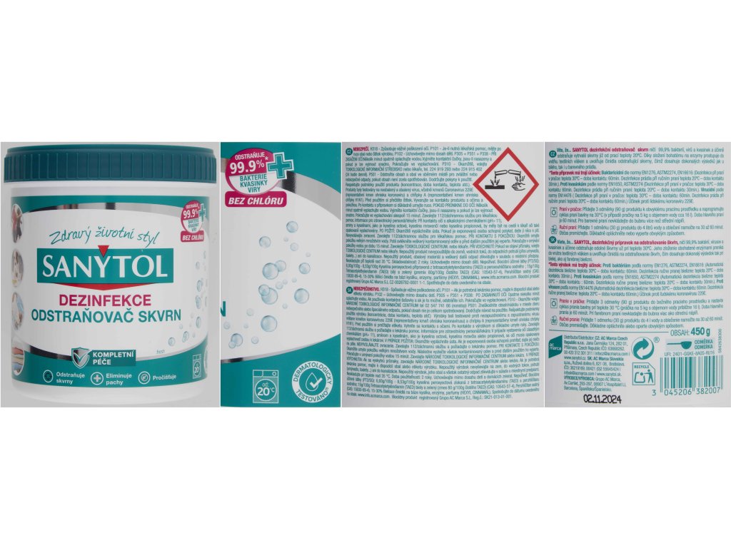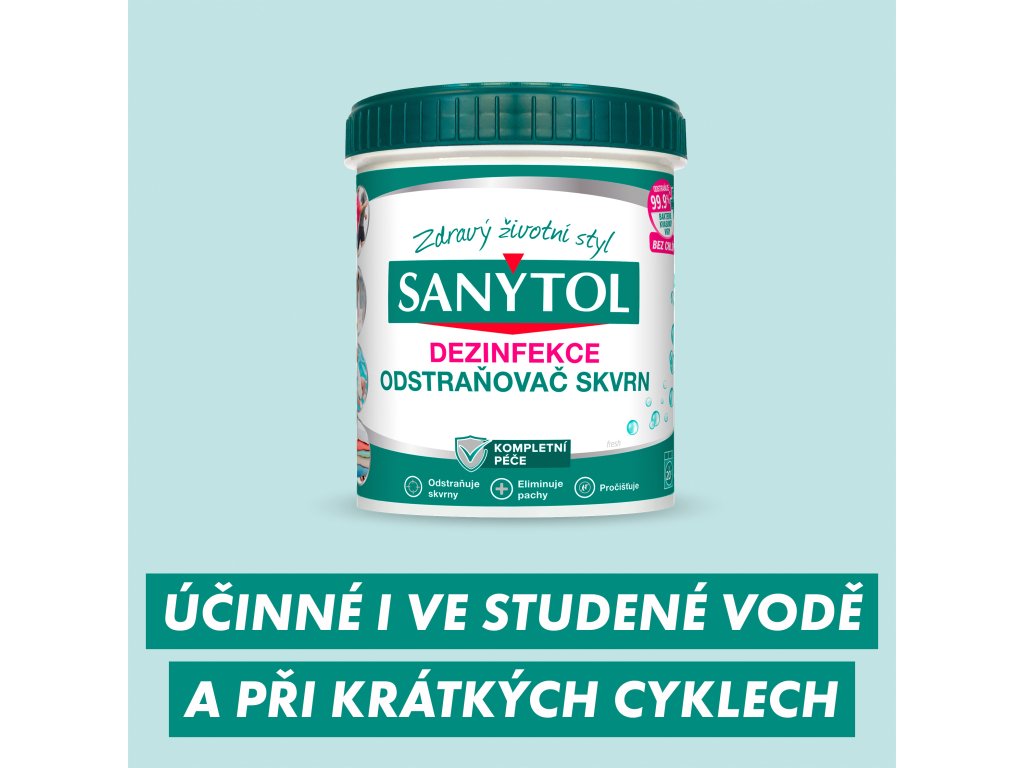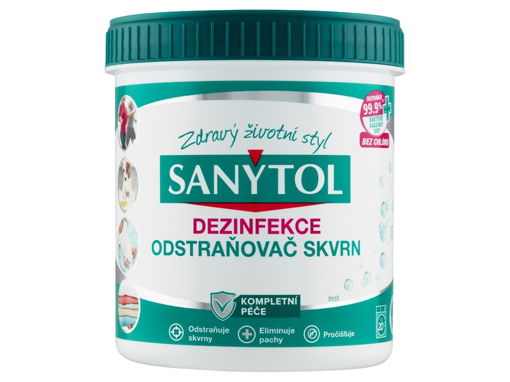 SANYTOL dezinfekční odstraňovač skvrn je ideální volbou pro hygienicky čisté a svěží prádlo už od 20 °C. Díky svému enzymaticky aktivnímu složení účinně proniká do hloubky vláken, kde uvolňuje látky pro odstranění i odolných skvrn. Zároveň ničí 99,9 % bakterií, kvasinek, virů včetně chřipky A H1N1 a lidského koronaviru 229E, čímž eliminuje nejen nečistoty, ale i původce nepříjemného zápachu a kožních podráždění. Výrobek je bez chlóru, dermatologicky testovaný a vhodný pro bílé i barevné prádlo. Lze jej použít na spodní prádlo, sportovní oblečení, dětské textilie, bytový textil i jemné prádlo, které nesnese praní na vysoké teploty. Praktický pomocník pro každodenní praní v pračce i při ručním praní.