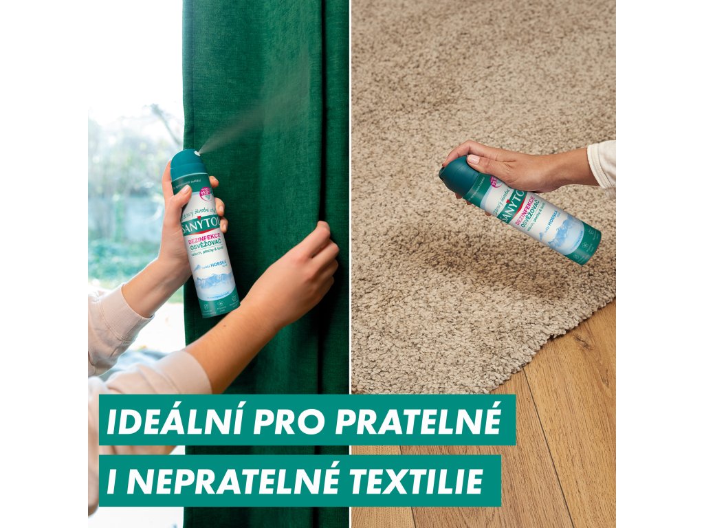SANYTOL dezinfekční osvěžovač vzduchu, povrchů a textilií je ideální volbou pro ty, kdo chtějí udržet svůj domov hygienicky čistý a zároveň svěže provoněný. Zničí 99,9 % bakterií, plísní a virů, včetně viru chřipky A (H1N1) a lidského koronaviru 229E. Díky svému složení 4 v 1 dezinfikuje, čistí, neutralizuje a pohlcuje zápach. Je vhodný pro použití ve vzduchu, na tvrdých površích i na textiliích, jako jsou záclony, koberce nebo čalounění. Nezanechává skvrny a je šetrný k textilním materiálům. Obsahuje svěží horskou vůni, která zanechá pocit čistoty a svěžesti v celém domově. Přípravek je bez obsahu chlóru a snadno se aplikuje pomocí rozprašovače.