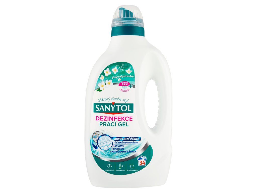 Dezinfekční prací gel SANYTOL je ideální volbou pro hygienicky čisté prádlo i při nízkých teplotách. Díky svému trojitému účinku odstraňuje nejen skvrny, ale i 99,9 % bakterií, virů (včetně viru chřipky A H1N1) a kvasinky jako Candida albicans. Eliminuje mikroby, které mohou být příčinou nepříjemného zápachu, podráždění pokožky nebo nemocí. Neobsahuje chlór a je šetrný k textiliím i pokožce.