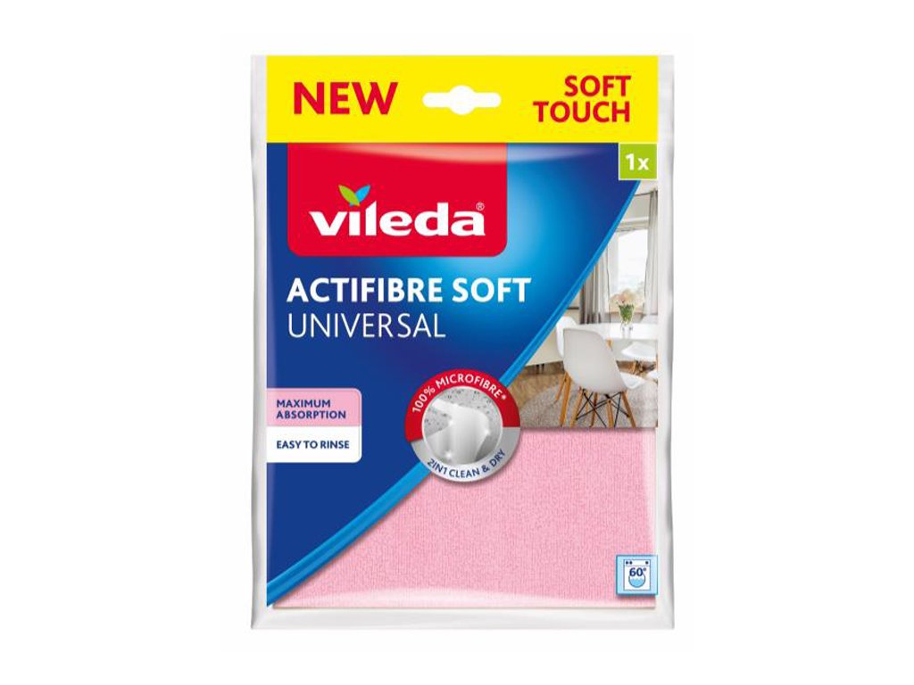 VILEDA Actifibre Soft je čisticí hadřík z mikrovlákna s technologií aktivní absorpce ACTIFIBRE. Díky ní kombinuje maximální savost s jemným povrchem, který zanechává plochy dokonale čisté a bez šmouh. Hadřík je ideální pro použití na okna, sklo i další citlivé povrchy, kde je vyžadováno šetrné čištění bez poškrábání. Je jemný na dotek, velmi rychle schne a lze jej snadno vyždímat. Při úklidu nevyžaduje použití chemických prostředků, což z něj činí praktického pomocníka pro každodenní údržbu domácnosti. Díky své vysoké životnosti vydrží i při opakovaném praní v pračce až na 60 °C.
