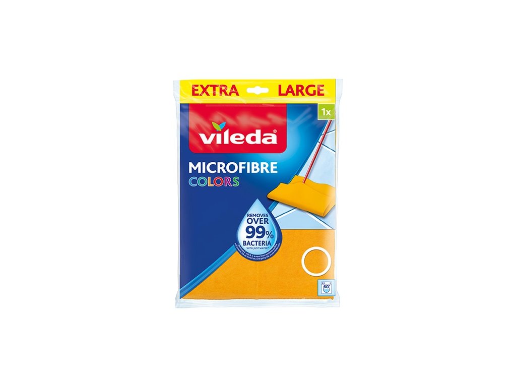 VILEDA Colors mikrohadřík na podlahu je extra velký univerzální hadřík z mikrovláken, navržený pro důkladný a zároveň šetrný úklid všech typů podlah v domácnosti. Díky jemným smyčkám z mikrovláken účinně zachytává nečistoty, prach i mastnotu a zanechává povrch čistý a lesklý bez šmouh. Mikrohadřík umožňuje hygienické čištění pouze za pomoci vody, bez nutnosti použití chemických čisticích prostředků, přičemž mikrovlákna fyzicky odstraní více než 99 % bakterií z povrchu. Extra velký formát usnadňuje úklid větších ploch a šetrné provedení je vhodné i pro citlivé povrchy. Hadřík je vysoce savý, snadno se ždímá a je určen pro opakované použití, včetně praní v pračce. Barva hadříku je dodávána dle aktuální skladové dostupnosti.