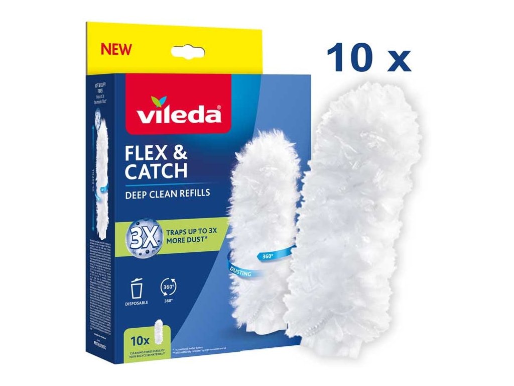 Náhrada pro prachovku VILEDA Flex & Catch představuje ideální řešení pro každodenní úklid domácnosti. Díky 360° čisticím vláknům účinně zachycuje prach, nečistoty i vlasy ze všech směrů a zanechává povrchy dokonale čisté – bez víření prachu do vzduchu.