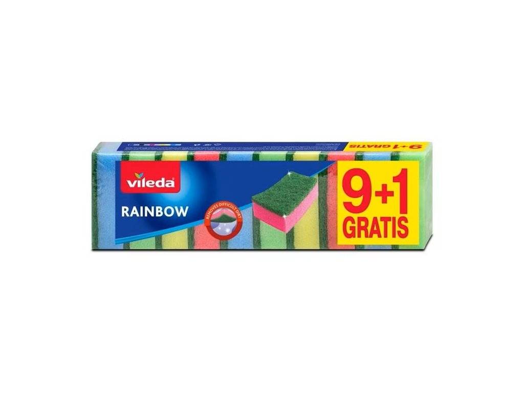 Barevné houbičky VILEDA Rainbow jsou praktickým pomocníkem pro každodenní úklid domácnosti. Každá houbička má dvouvrstvou strukturu – měkká pěnová část jemně pění a účinně absorbuje tekutiny, zatímco hrubší abrazivní vrstva si poradí i s odolnějšími nečistotami a zaschlými zbytky jídla.