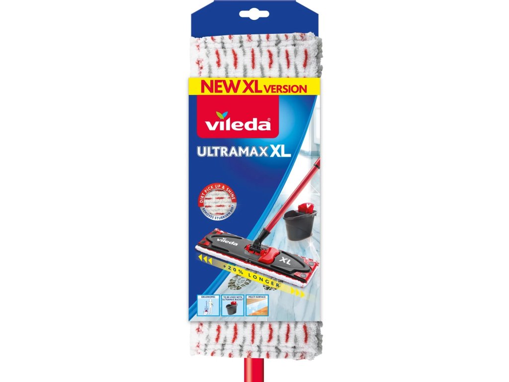Speciální Power zóna na spodní straně hlavice zvyšuje tlak na podlahu, což umožňuje odstranit špínu s minimálním úsilím a bez namáčení rukou. Mop je vybaven dvoudílnou teleskopickou tyčí, kterou lze nastavit až do délky 140 cm pro pohodlné používání. Je vhodný pro všechny typy tvrdých podlah, jako jsou PVC, plovoucí podlahy, parkety nebo dlažba. Technologie mikrovláken umožňuje odstranit více než 99 % bakterií a virů pouze za pomoci vody, bez použití chemických čisticích prostředků. Mop je určen k použití s VILEDA Ultramax kbelíkem se ždímacím košem a kompatibilními náhradními návleky řady Ultramax XL.